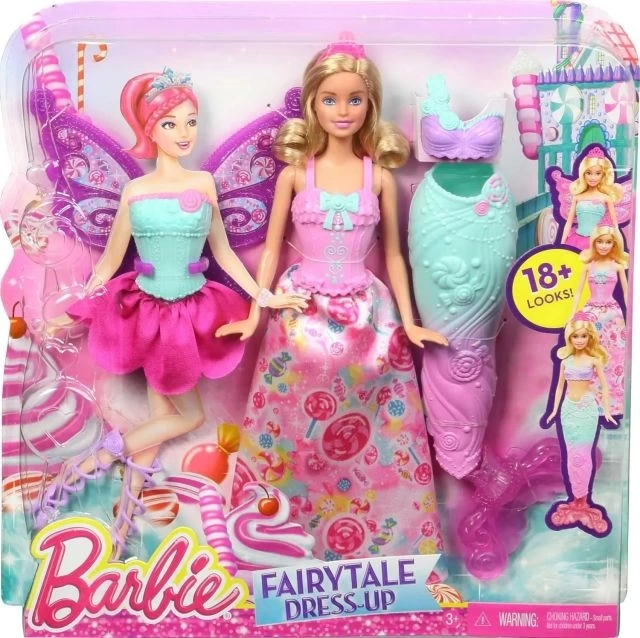 Prenses, deniz kızı ve peri olmak üzere üç eksiksiz karakter kıyafetine sahip Barbie bebeği içeren bu hediye setiyle her türlü peri masalını anlatın!