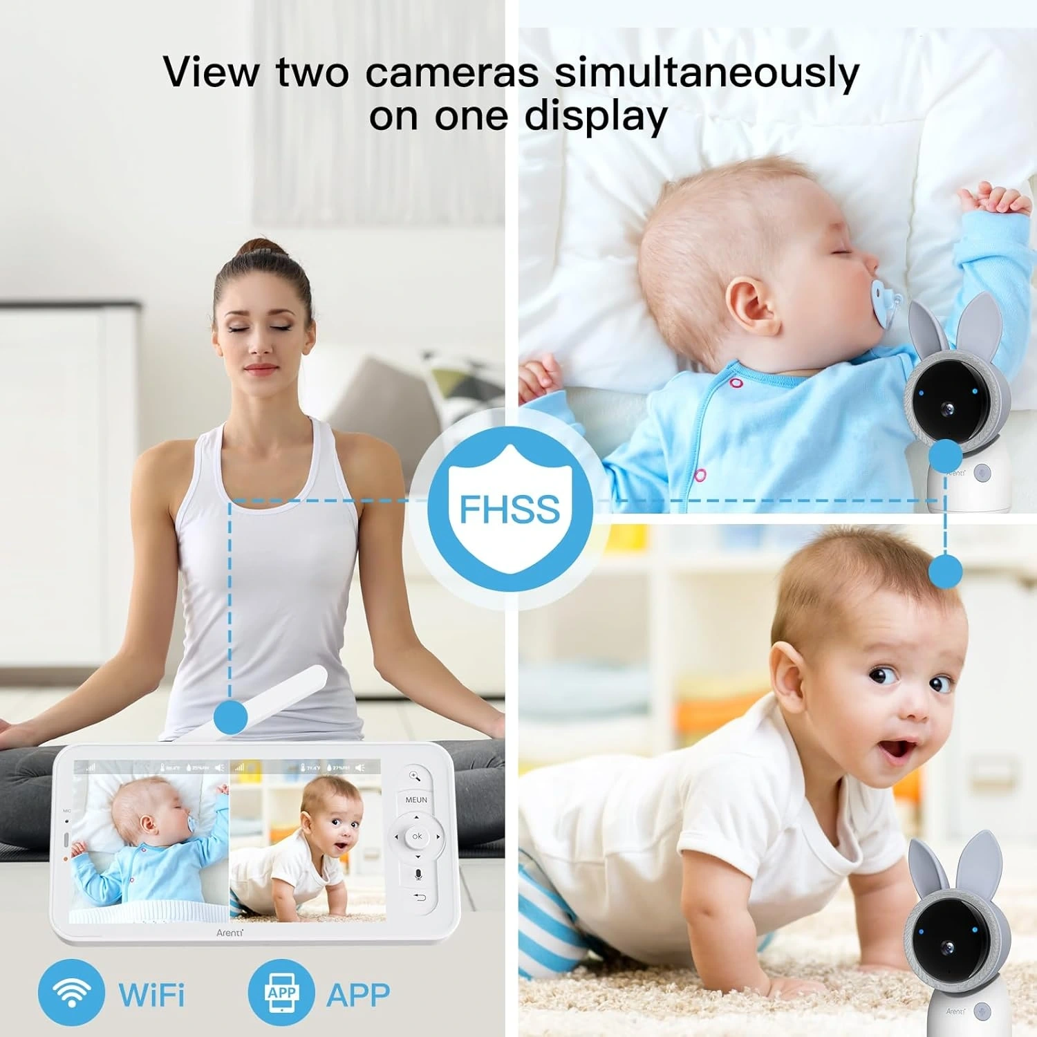 ARENTI Upgraded Baby Monitor with 2 Cameras, 4MP 2.4G&5G WiFi Baby Camera Monitor, Infrared Night Vision, Night Light, 2-Way Audio, Cry&Motion Detection, Temp&Humidity Sensor, App Control