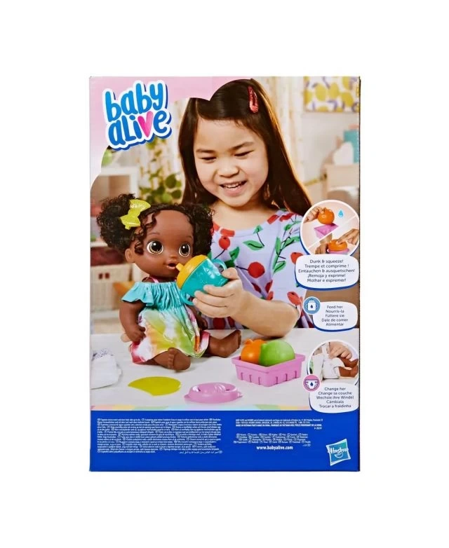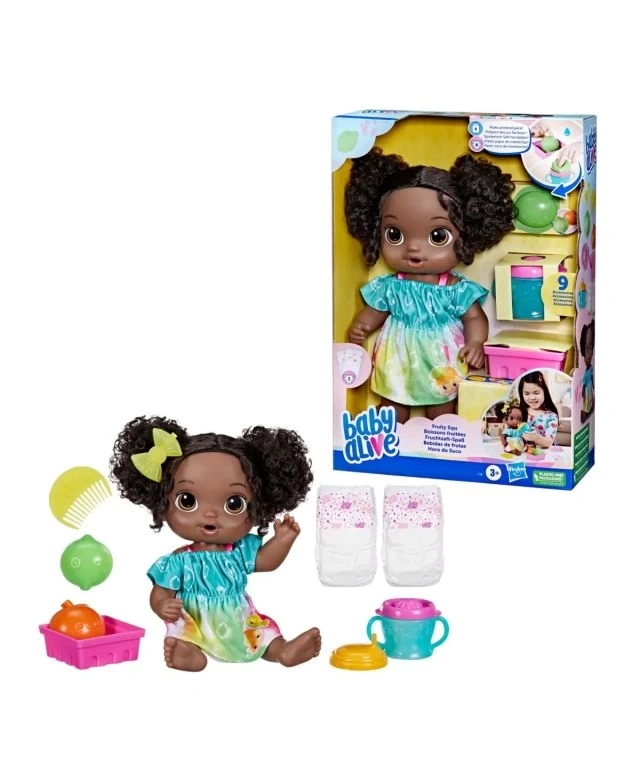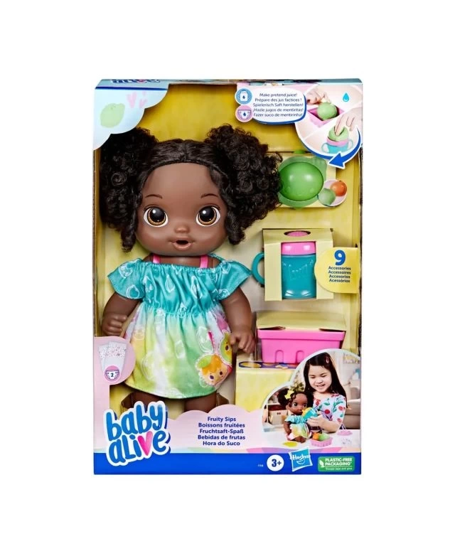 İçerir: Çıkarılabilir kıyafetli bebek, 2 plastik meyve, sepet, hayali meyve sıkacağı veya sippy bardak ve 2 kapak ile bebek bezi.