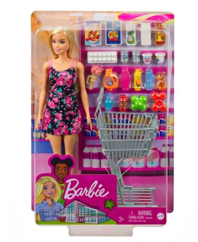 Bu Barbie bebek ve alışveriş seti, genç hayal güçlerini günlük bir aktiviteye kendi yorumlarını katmaları ve alışveriş eğlencesini yaşamaları için teşvik eder