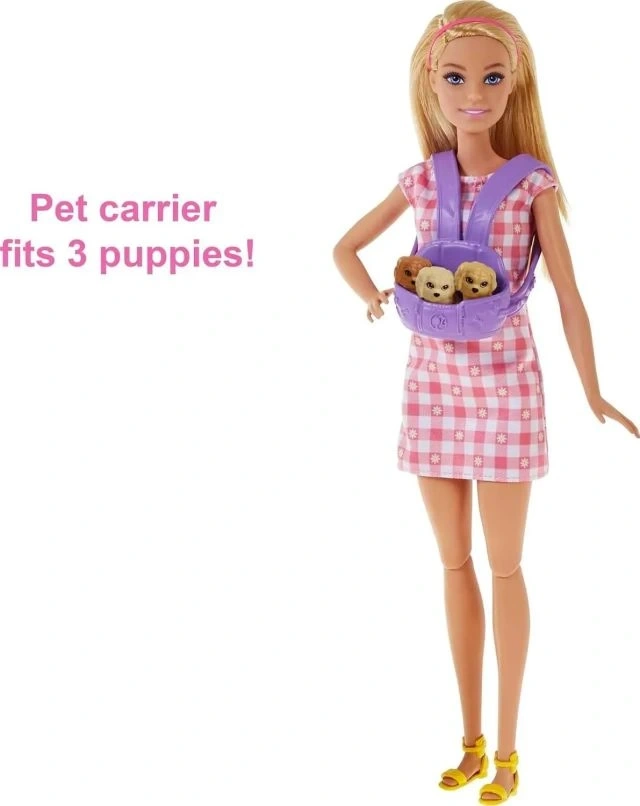 • Köpek taşıma çantasında üç yavruya da yer vardır, böylece Barbie bebek hareket halindeyken onlara bakabilir.