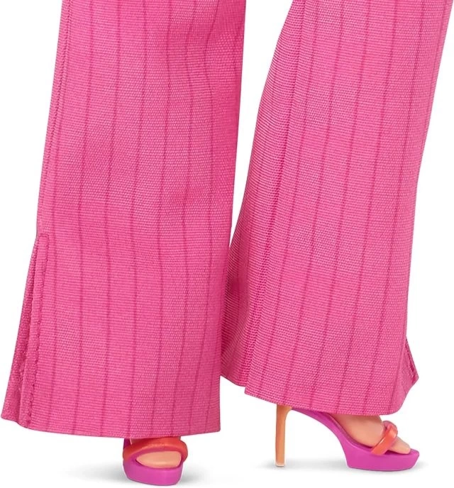 Barbie bebek baştan ayağa rüya gibi pastel renklerle giyinmiş. Pembe, mavi ve sarı renkte kesilmiş ceketi, kabarık etek ve uyumlu bluzla mükemmel bir şekilde eşleşiyor.