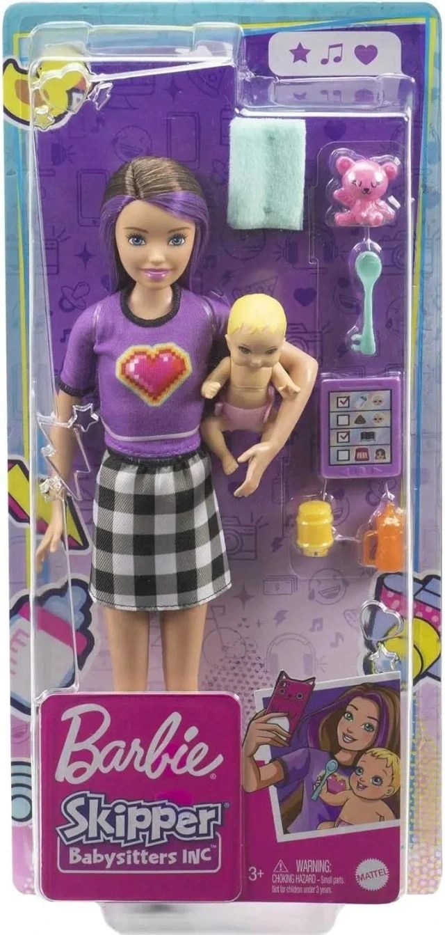 Çocuklar, 1 bebek bakıcısı bebek, 1 oyuncak bebek ve 4 temalı parçadan oluşan bu Barbie Skipper Bebek Bakıcıları Inc. bebek ve aksesuar setiyle klasik bebek bakıcılığı anları yaşayabilir!