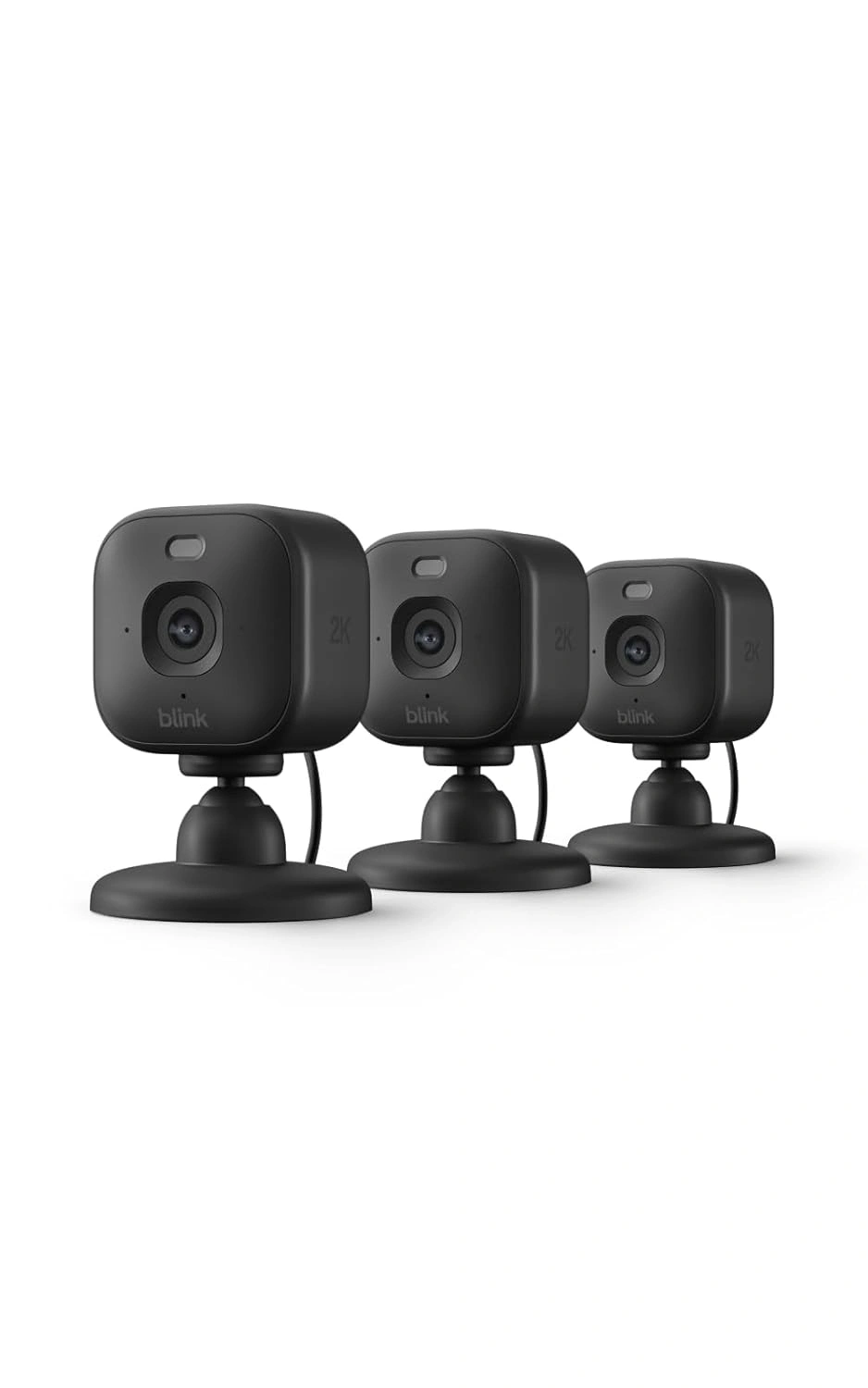 Blink Mini 2K+ (newest model) – Plug-in Home & Pet Security Camera with 2K video resolution, color night vision, enhanced audio, motion detection – 3 camera (Black)