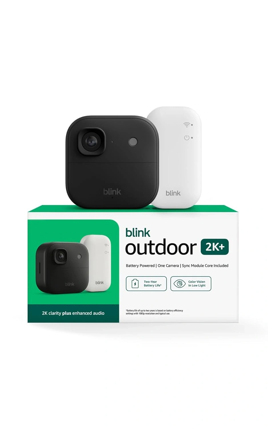 Blink Outdoor 2K+ (newest model) — Wireless smart security camera, 2K video resolution, enhanced audio, two-year battery. Sync Module Core included — 1 camera system (Black)