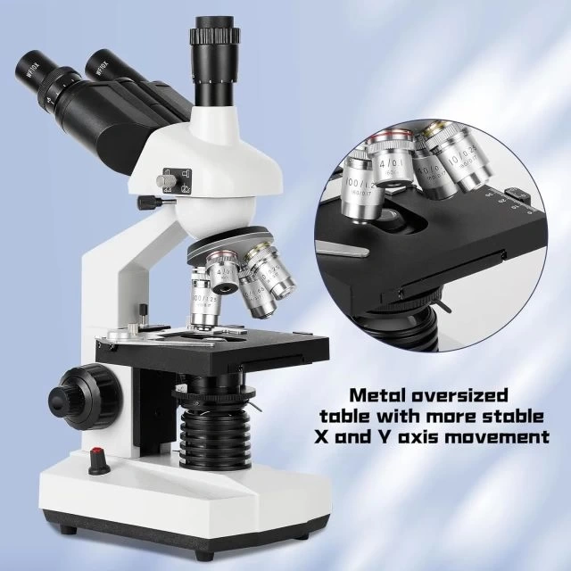 Trinoküler Bileşik Mikroskop: Bu 40X-5000X biyolojik mikroskop, doktorların/amatör bilim adamlarının/hobilerin yaşamın harika dünyasını keşfetmelerine yardımcı olmak için tasarlanmıştır. Slaytlardaki en küçük ayrıntıları görüntülemek için süper şık ve çok yönlü bir bileşik mikroskop;