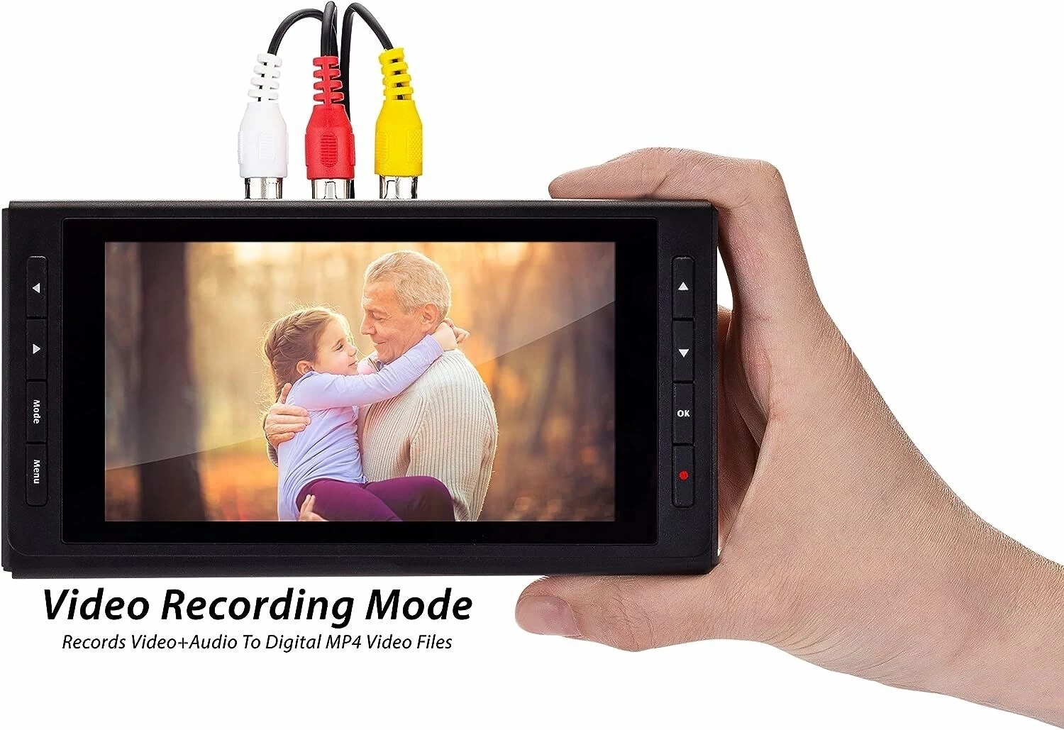 Ses / Müzik Kayıt Özelliği Kaset çalarlar, pikaplar ve daha fazlası gibi ses kaynaklarından dijital ses dosyalarına (WAV veya MP3) kolayca kayıt yapın. | Şarj Edilebilir Lityum Pil Cihazın yeni yerleşik, şarj edilebilir lityum pili ile pil gücüyle kayıt yapın veya oynatın. | Geliştirilmiş "Özel" Otomatik Durdurma Özelliği Gelişmiş otomatik durdurma özelliğiyle cihazın kayıt yapacağı tam dakika sayısını ayarlayın. | Büyük 5" LCD / Önizleme Ekranı Cihazın daha büyük 5" önizleme ekranıyla videonuzu ve/veya sesinizi kayıt öncesinde, sırasında veya sonrasında hızla önizleyin. |