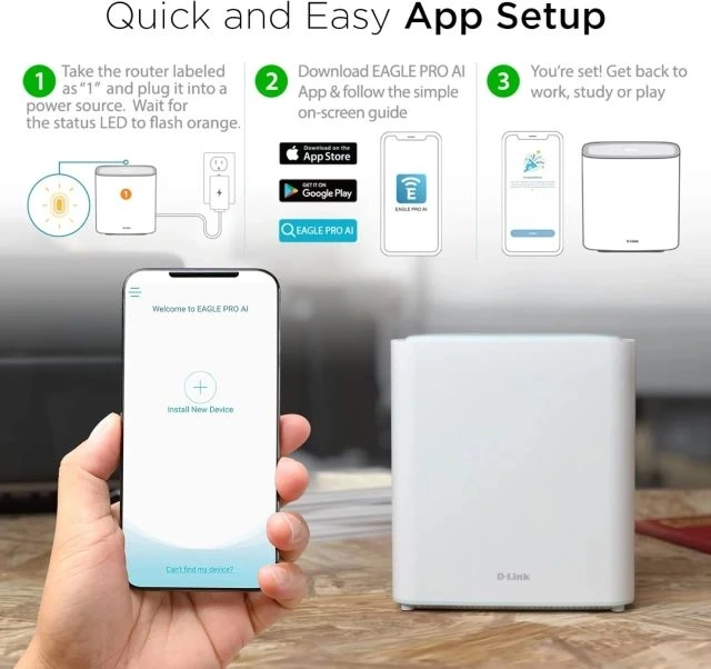 Kolay Uygulama Kurulumu ve Geriye Dönük Uyumluluk - Sezgisel Eagle Pro AI uygulaması sizi dakikalar içinde çalışır hale getirir. ATandT, Verizon, Xfinity, Spectrum, RCN, Cox, CenturyLink, Frontier vb. gibi tüm internet servis sağlayıcılarıyla (İSS) çalışır (çoğu internet servis sağlayıcısı için bir modem gerekir).