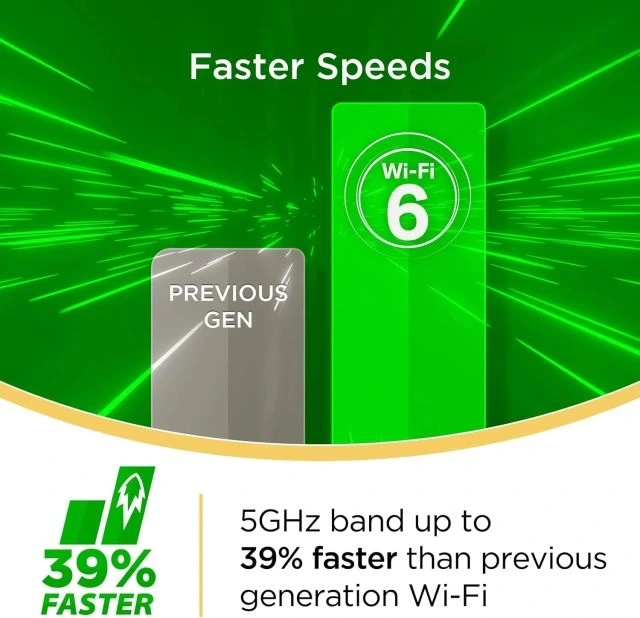 GÜÇ VE PERFORMANS: Yeni nesil Wi-Fi 6 3200 Mbps'ye kadar hızlar (800 Mbps artı 2402 Mbps) - Daha akıcı 8K akış, daha hızlı oyun ve ultra hızlı indirmeler için eşdeğer 11ac'den %39'a kadar daha hızlı 5 GHz bant hızları elde edin. Gigabit bağlantı noktaları, kablolu cihazları ultra hızlı hızlarda bağlamanıza olanak tanır.