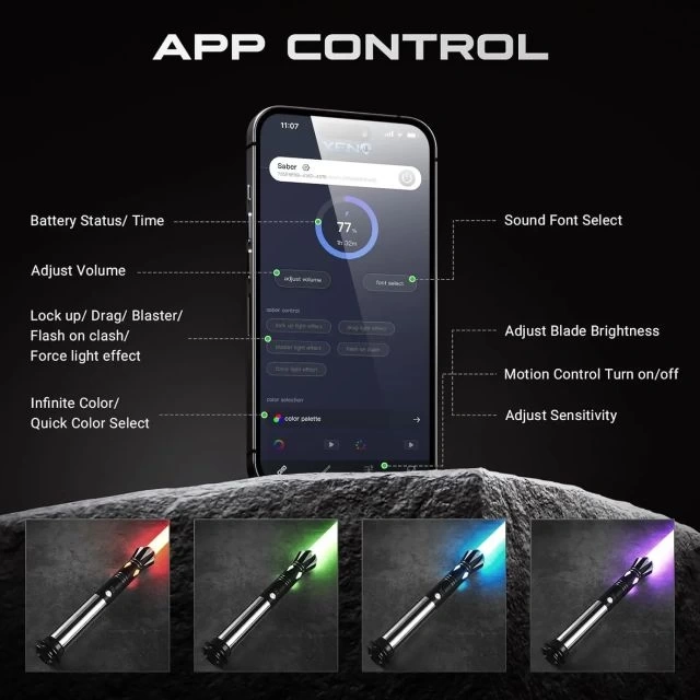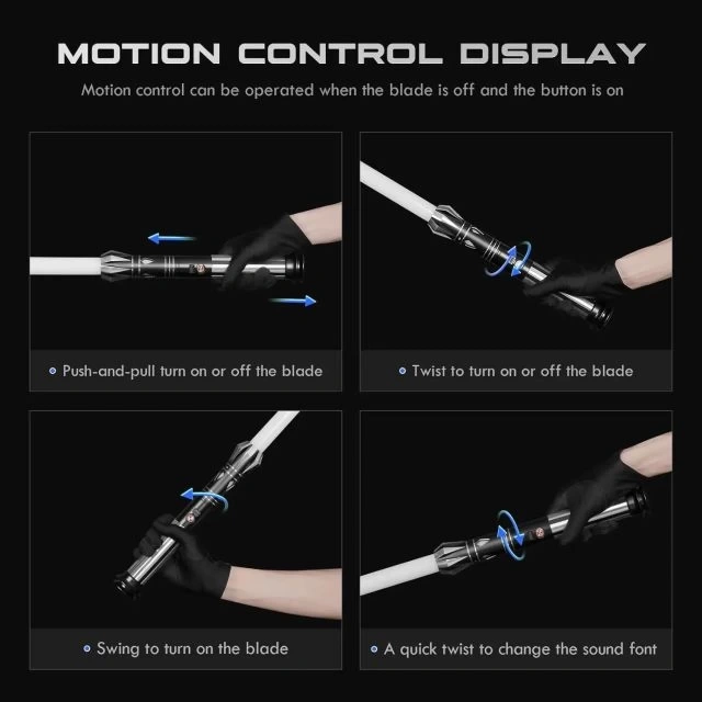 Yeni Sürüm Pürüzsüz Sallanan Işık Kılıcı: Sonsuz renkli ışın kılıcı, birden fazla renge sahip olup sürekli değişir. 12 set ses yazı tipi, gerçekçi film ses efektleri bulunur. Hareket kontrolü iterek ve çekerek, döndürerek veya sallayarak sağlanır.