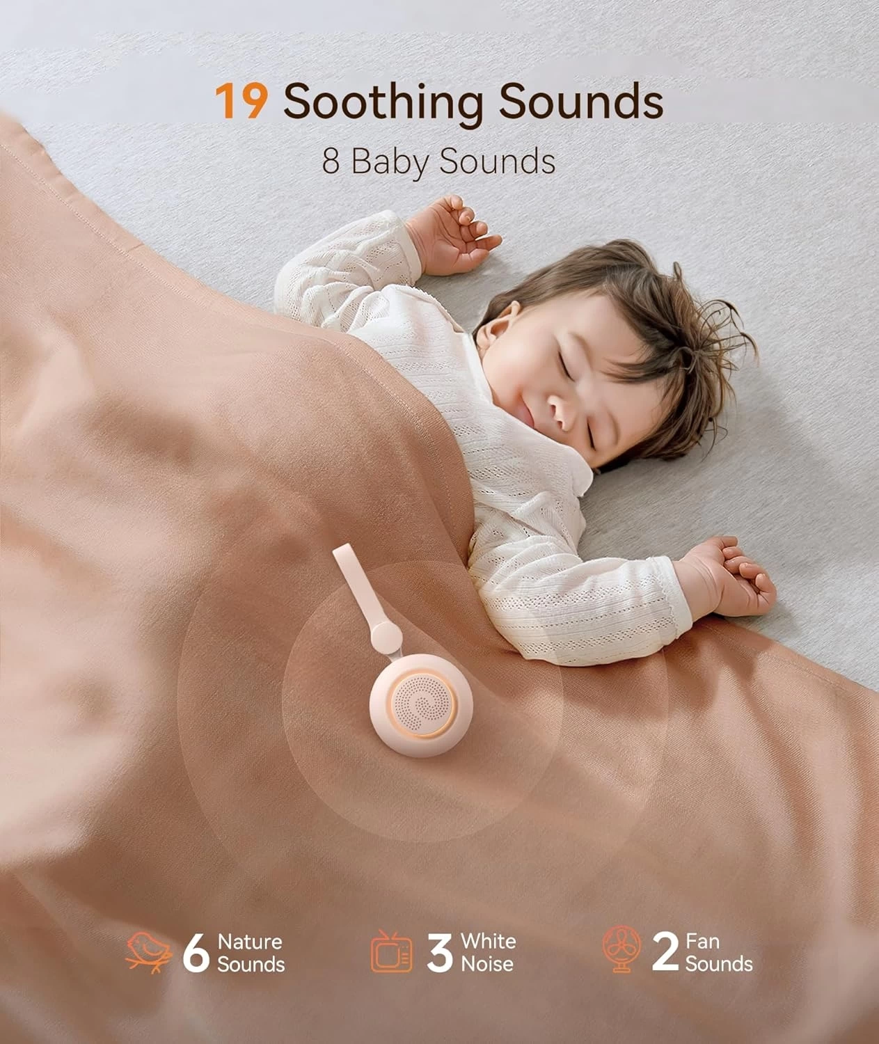 Dreamegg Portable Baby Sound Machine - White Noise Machine for Baby Sleeping with Light, Noise Machine for Baby Stroller Car Seat, 19 Soothing Sounds, White Noise for Baby Gift Travel Essential