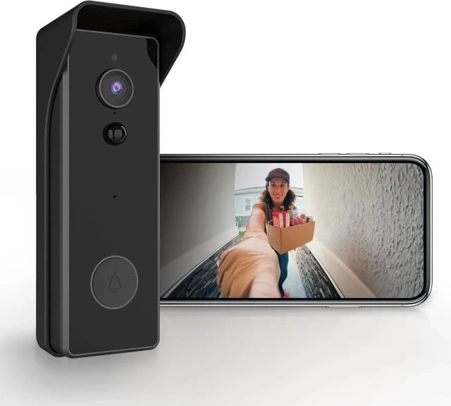 YÜKSEK ÇÖZÜNÜRLÜK - Dünyanın herhangi bir yerinden evinizin veya ofisinizin dışını izlemenizi sağlayan, hareket algılama ve dahili iki yönlü mikrofon ve ses hoparlörüne sahip 1080P HD dış mekan, takılabilir WiFi kapı zili video güvenlik kamerası