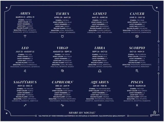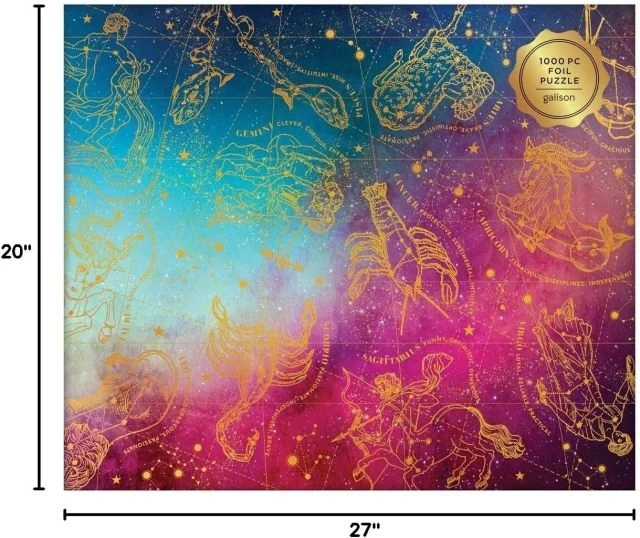 MUHTEŞEM DETAYLAR: Bu kusursuz uyumlu puzzle, kozmik ışıltı ve parıltının mükemmel dokunuşunu eklemek için altın varakla tamamlanan on iki zodyak burcunu içerir. Herhangi bir puzzle sever için ideal bir hediye olur.