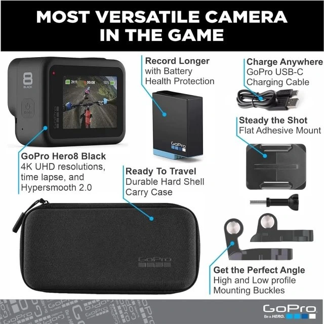 HERO8 Black Modları: Vlogger'lar, profesyonel film yapımcıları ve gelecek vadeden içerik oluşturucular, flaşlar, mikrofonlar, LCD ekranlar ve daha fazlası gibi hızlı yüklenen aksesuarlarla her zamankinden daha fazlasını yapabilir. Yakalama oyununuzu geliştirmek için isteğe bağlı Medya Modunu eklemeniz yeterli.