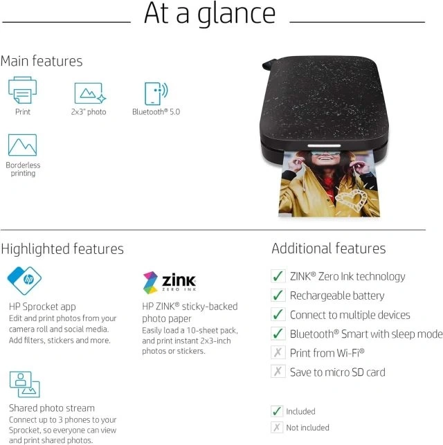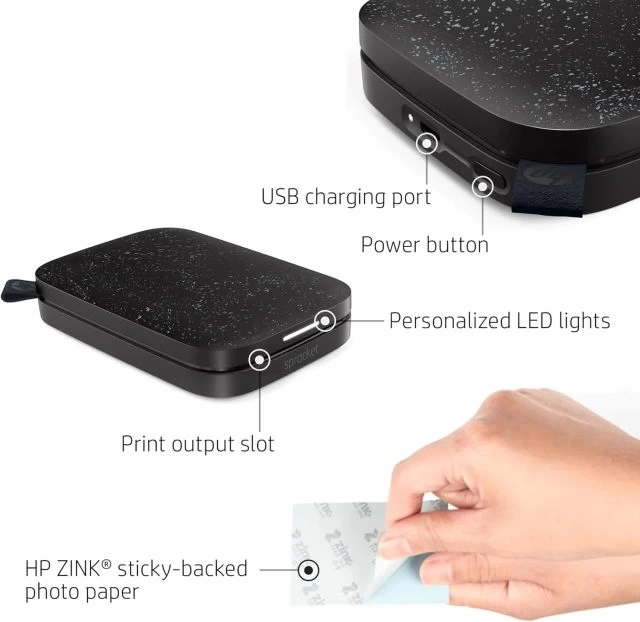 İSTEK ÜZERİNE FOTOĞRAF YAZDIRIN HP Sprocket 2. Sürüm Yazıcı, Akıllı Telefonunuzdan veya Sosyal Medyadan 2”x 3” Fotoğrafları Basar. iOS 10-Plus ve Android 5-Plus, Bluetooth 5.3 için
