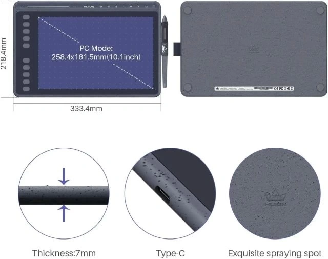 Ultra İnce ve Geniş Çalışma Alanı - HS611 çizim tableti yalnızca 7,3 mm kalınlığındadır ve 550 g ağırlığındadır. Piyasadaki en ince tablettir ve tableti yanınızda taşıması kolaydır. 6,35x10,17 inç (161,5x258,4 mm) yeterli çalışma yüzeyi, size kaygısız bir çizim deneyimi sağlar. Nokta ızgarası kapağı çalışma alanını belirler ve böylece işin doğruluğunu artırır. Tepeden tırnağa, çatlaklardan köşelere kadar HS611 hepsi aynı renkte, kalemin rengi bile uyumlu.