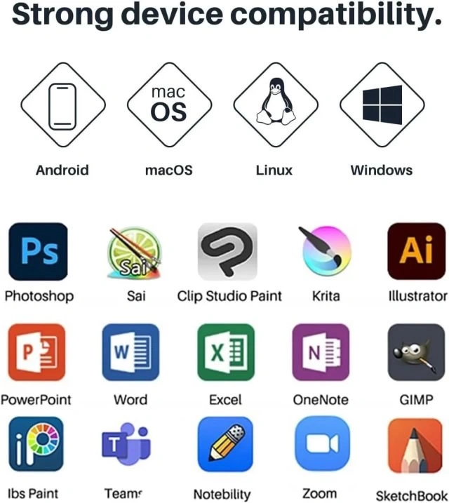 NOT: İmleç şu anda SAMSUNG Note Serisi dışındaki SAMSUNG cihazlarında görünmeyecektir. Photoshop, SAI, Illustrator, Clip Studio, FlipaClip, Medibang, Autodesk Sketchbook, Zenbrush ve daha fazlası dahil olmak üzere çoğu önemli yazılımla uyumludur.