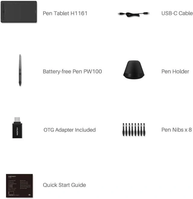 Uyumluluk: HUION grafik tableti, Windows 7 veya üzerini/ macOS 10.11 veya üzerini/ Android 6.0 veya üzerini/ Linux'u (Ubuntu) destekler. OTG konektörü aracılığıyla telefonunuzu sanat tabletine kolayca bağlayabilirsiniz; iPhone ve iPad şu anda DEĞİLDİR. H1060P, PS, SAI, AI, CDR vb. dahil olmak üzere çeşitli ana akım tasarım ve çizim yazılımlarını destekler.