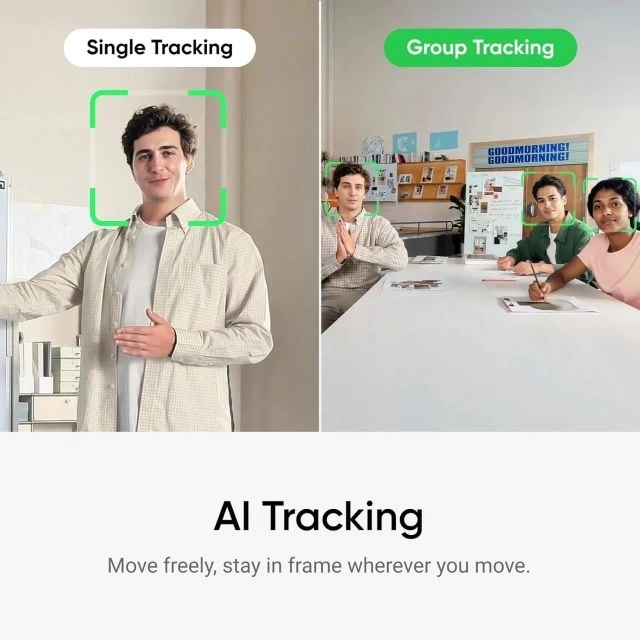 • Yapay Zeka Takibi: Insta360 Link 2, odadaki hareketlerinizi takip etmek için fiziksel olarak yatay ve dikey hareket eder ve sizi veya grubunuzu mükemmel bir şekilde kadrajda tutar.