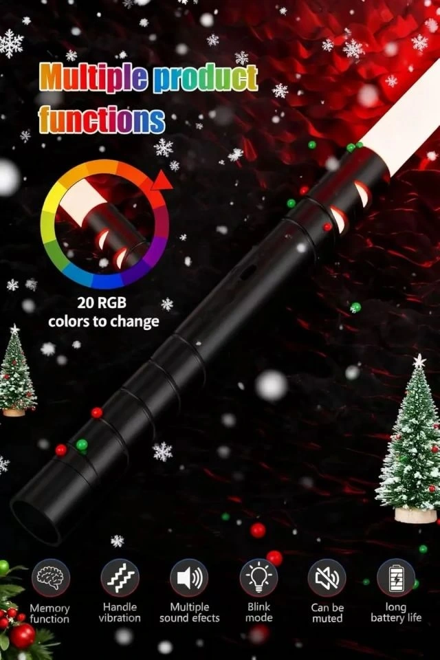 NOEL HEDİYESİ: 12 renk ve 4 modlu RGB JvmuSaber ışın kılıcı. (Sessiz mod/Savaş modu/Patlama modu/Renkli mod). En güzel hediye paketine sahiptir.