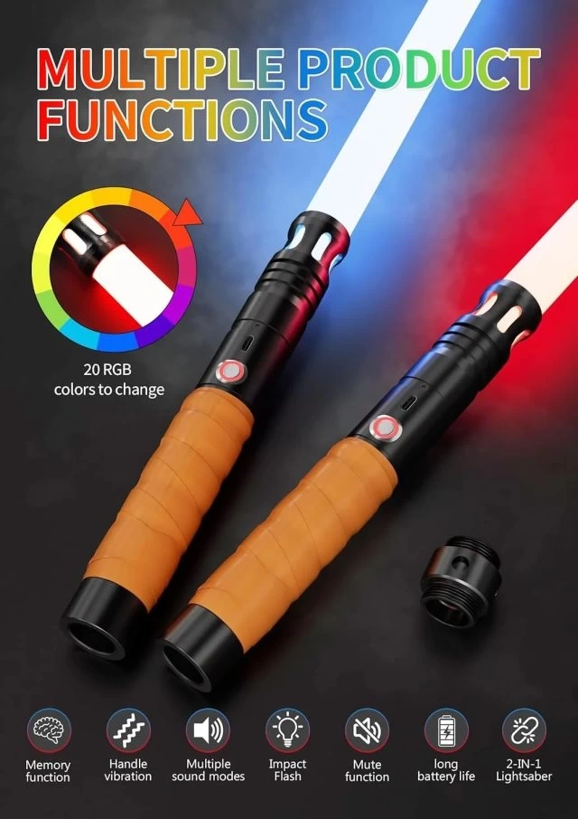 SÖKÜLEBİLİR LIGHTSABER: İki Jvmusaber ışın kılıcı, 2'si 1 arada uzun bir ışın kılıcı olarak takılabilir, ayrıca bıçak ve kabzası demonte edilebilir. Buzlu metal kabzadan ve uzun hizmet ömrü için dayanıklı akrilik kılıç gövdesinden yapılmıştır.