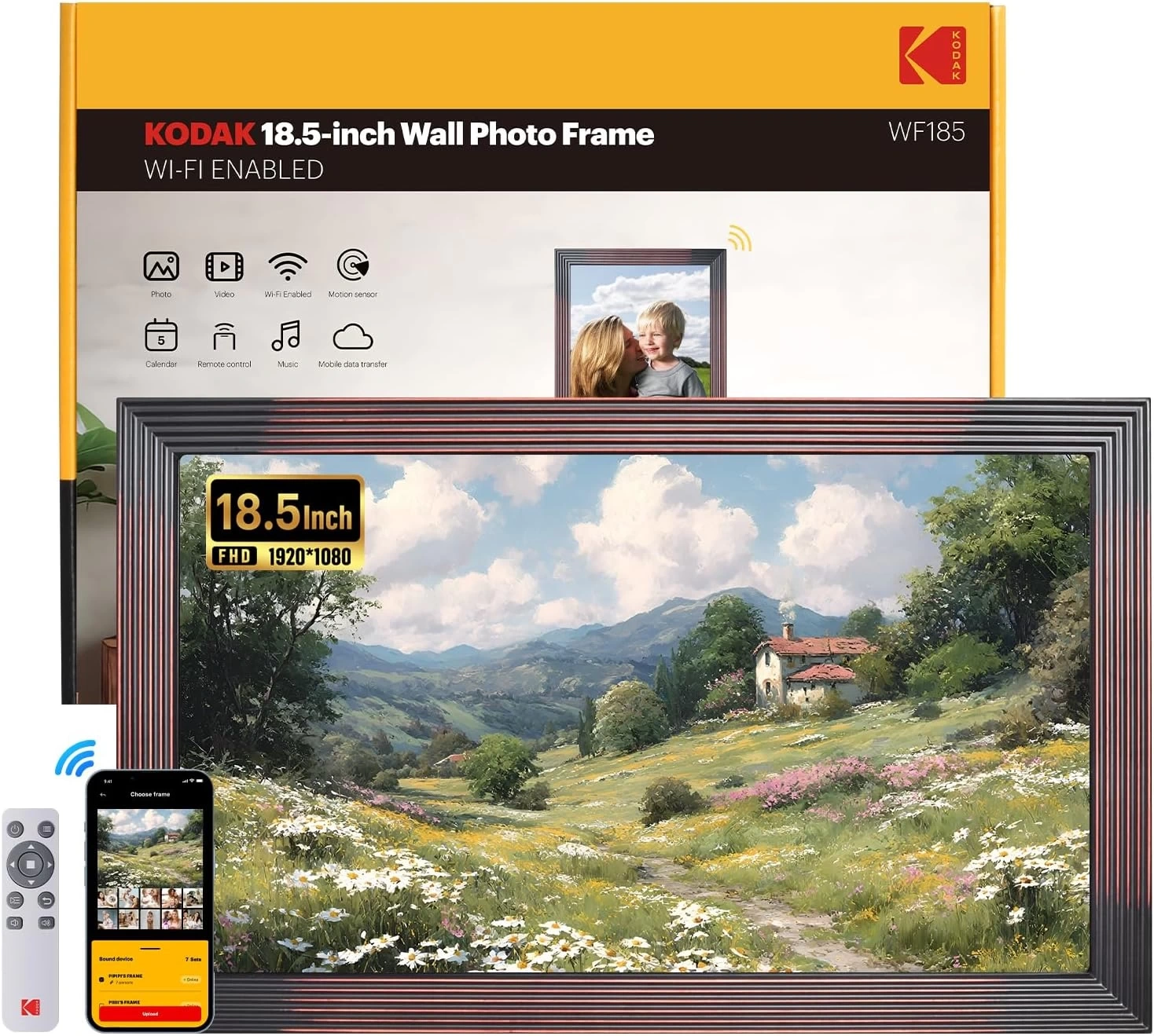 KODAK 18.5 Inch Wooden WiFi Digital Picture Frame,1920 * 1080 X-Large Digital Photo Frame,32GB Memory,IPS Screen, Wall-Mounted with Remote, Share Picture Video, Work with Alexa,Best Gifts for Mom
