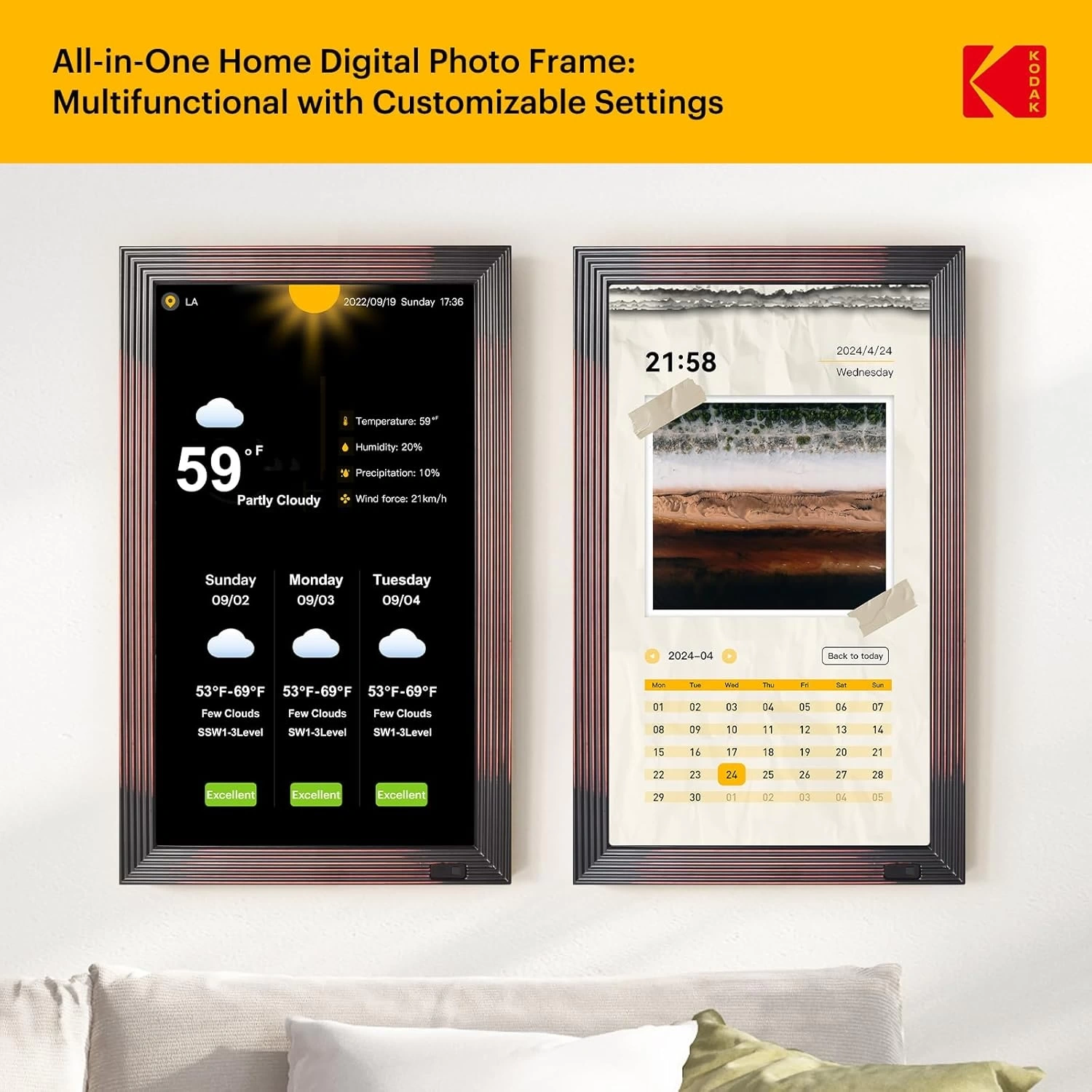 KODAK 21.5" Smart Digital Picture Frame with 32GB+2GB RAM - Auto-Rotating 1920 * 1080 FHD IPS Screen, Remote Control, WiFi/SD Card/App Connectivity for Home, Office & Cafe