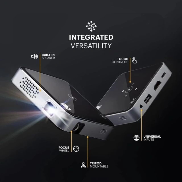 Dünyanın En Küçük ve En Hafif DLP Projektörü Ev, İş, İş veya Oyun için El Çantanıza, Evrak Çantanıza veya Arka Cebinize Rahatlıkla Sığar.
