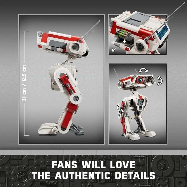 LEGO Star Wars BD-1 yap ve sergile oyuncağı (75335) – Star Wars Jedi: Fallen Order'ın keşif droidi olan BD-1'in parçalarla yapılan kendi ayrıntılı modelini yapmayı çok sevecek. Parçalarla yapılan bu model, hareketli eklemlere ve geriye, öne ve yana yatırılabilen bir kafaya ve ayrıca stimülasyon kutusu öğeleri için bir bölmeye sahiptir. Bir bilgi levhası ve tabelanın yanına takılabilen bir BD-1 LEGO figürü, ürünü tamamlar. Koleksiyonluk set – Bu BD-1 droidi, parçalarla yapılan bir dizi LEGO Star Wars droid sergileme modelinin parçasıdır, 14 yaş ve üzeri için üstün kaliteli hediye – Bu 1.062 parçalık yapım oyuncağını Star Wars Jedi: Fallen Order hayranlarına ve LEGO Star Wars koleksiyoncularına doğum günü veya tatil hediyesi olarak verebilirsiniz.