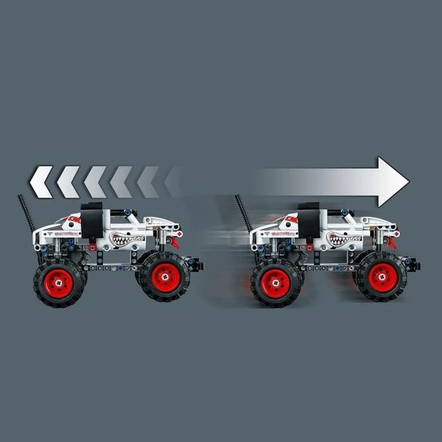 Bu LEGO Technic Monster Jam Monster Truck oyuncak seti, model bir yarış kamyonu oyuncağına dönüştürülebilen 2'si 1 arada geri çekilebilir aksiyonlu bir kamyon içerir