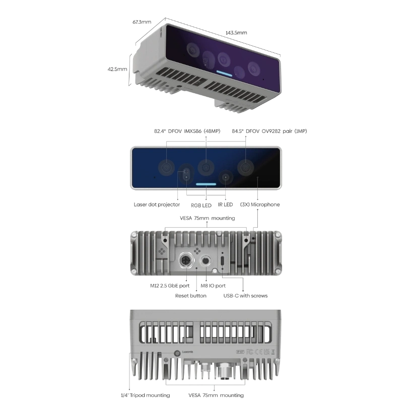 OAK 4D PRO , ürettiğimiz en gelişmiş stereo görüş ve kenar çıkarım kamerasıdır. Luxonis OS işletim sistemini kullanan gerçek bir bağımsız cihaz olan OAK 4D Pro, zarif tasarımı, endüstriyel sınıf malzemeleri ve sektör lideri işlem gücünü tek bir ünitede birleştiriyor.
