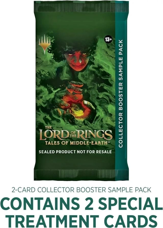 ÖZEL TEDAVİ KARTLARI TOPLA—Her deste, 1 Nadir veya Efsanevi Nadir ve en az 1 Geleneksel Folyo dahil olmak üzere The Lord of the Rings: Tales of Middle-earth setinden 2 özel uygulama kartı içeren 2 kartlı Collector Booster Sample Pack ile birlikte gelir.
