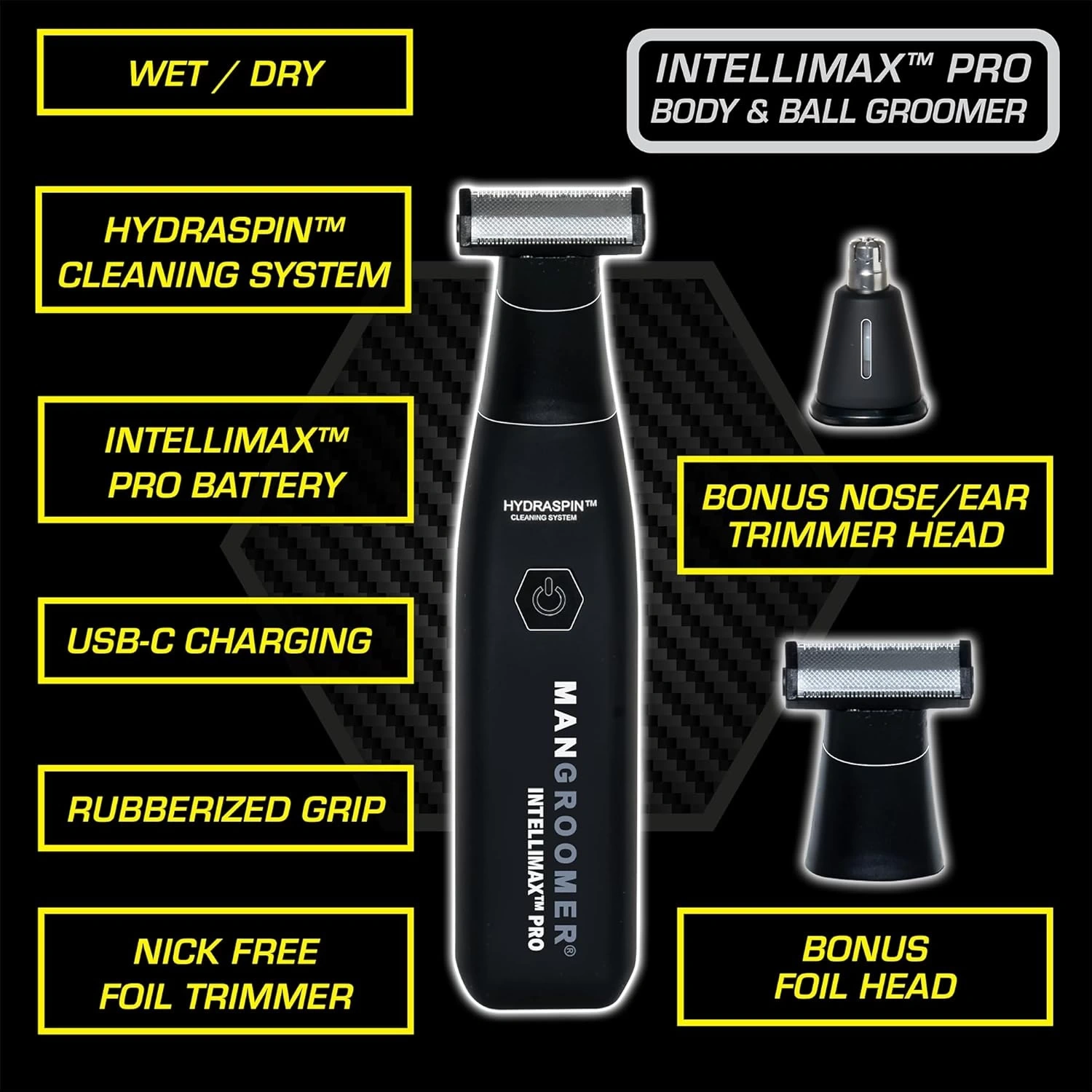 MANGROOMER INTELLIMAX PRO Body and Ball Groomer, Groin Trimmer for Men, Electric Ball Shaver, Pubic Trim, with Free Bonus Foil Included and Free Nose Trimmer Replacement Head