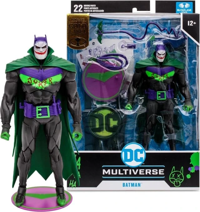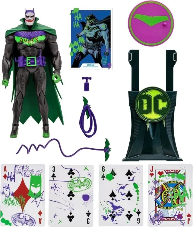 Jokerleştirilmiş aksesuarlar içerir: 4 oyun kartı, koleksiyon kartı tutucusu ve taban. Ayrıca Grapnel Başlatıcı, ipli Batarang, ipli Batarang