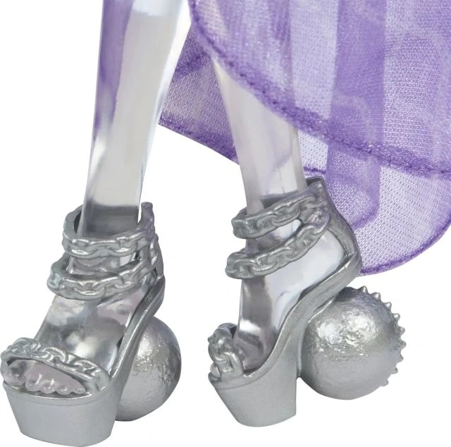 Monster High Spectra Vondergeist bebeği, mor pusuda hayalet zarafetinin timsali! Ürkütücü hikaye anlatımını ve stil eğlencesini teşvik etmek için birçok temalı parçayla birlikte geliyor.