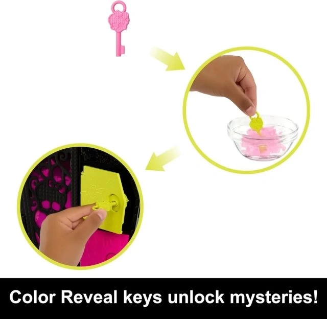 Skulltimate Secrets geri döndü ve daha önce hiç olmadığı kadar PARLAK. Moda sürprizleri ve dikkat çekici aksesuarlar gibi Neon Korkuları keşfetmek için Toralei Çizgili bebeğin dolabını açın.