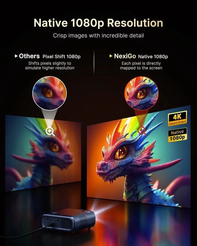 Sınırsız Eğlence: NexiGo PJ40 Ultra Projektör, Netflix, YouTube ve Prime Video için resmi lisanslarla birlikte gelir. Ek cihaz veya abonelik gerektirmeden, kutudan çıkar çıkmaz geniş bir içerik yelpazesinin keyfini çıkarın. Tek bir projektörle oturma odanızı tam teşekküllü bir eğlence merkezine dönüştürün.