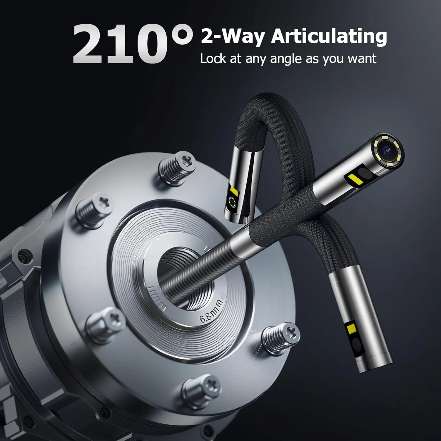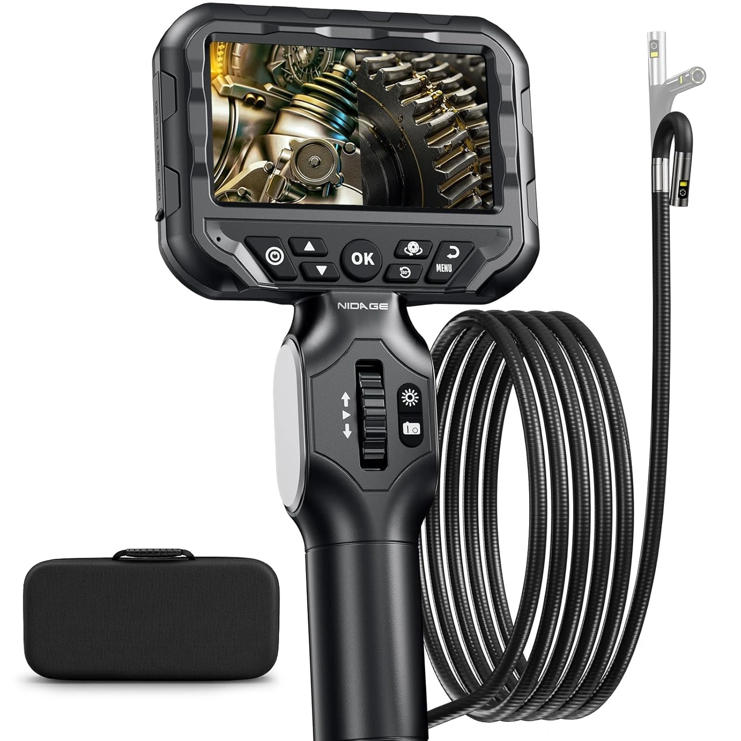 Dual Lens Articulating Borescope NIDAGE Two-Way Endoscope Camera with Light Articulated Probe, 0.25in Engine Inspection Camera Waterproof Fiber Optic Scope Cam Tool for Automotive Wall Mechanics 5.3FT