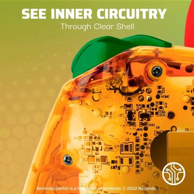 Net gövde Nintendo Switch denetleyicisinin iç devresini görmenizi sağlar. Mario gibi en sevdiğiniz Nintendo Switch oyun karakterlerinin eğlenceli sanat eserlerine sahiptir.