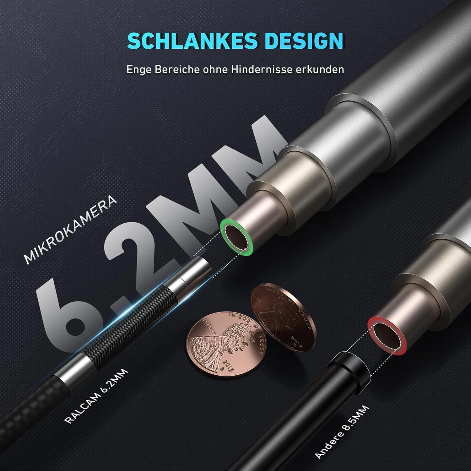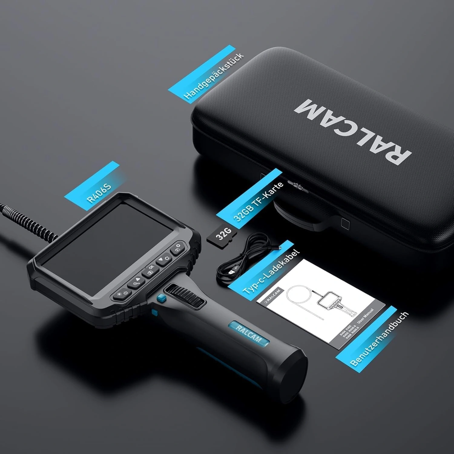 Ralcam Articulating Borescope Endoscope Camera with Light, 210° Dual-Direction Snake Camera for Automotive Inspection, 6.2mm Probe, 4.3" HD Screen, 6 Adjustable LEDs, IP67 Waterproof Semi-Rigid Cable