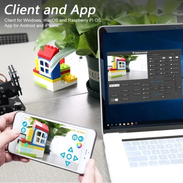 • Kontrol yöntemleri -> android telefonunuz veya tabletiniz, iphone'unuz ve bilgisayarınız tarafından kablosuz olarak kontrol edilir (windows, macos veya raspberry pi os'u çalıştırın).