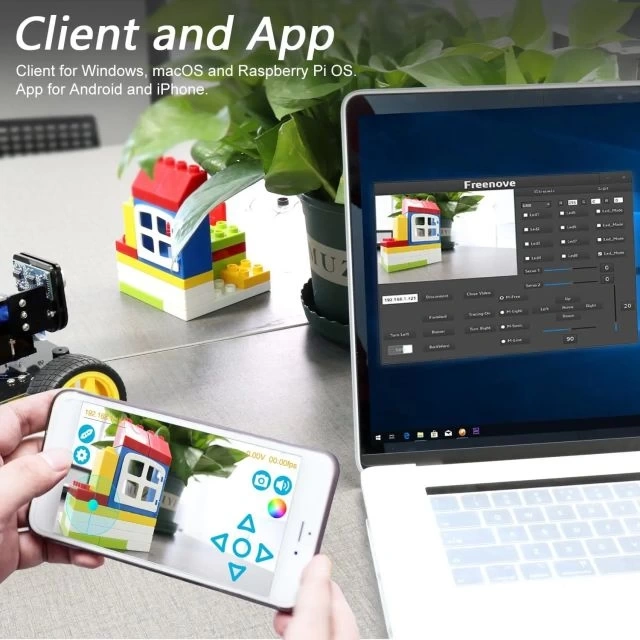 Kontrol yöntemleri -> android telefonunuz veya tabletiniz, iphone'unuz ve bilgisayarınız tarafından kablosuz olarak kontrol edilir (windows, macos veya raspberry pi os'u çalıştırın).