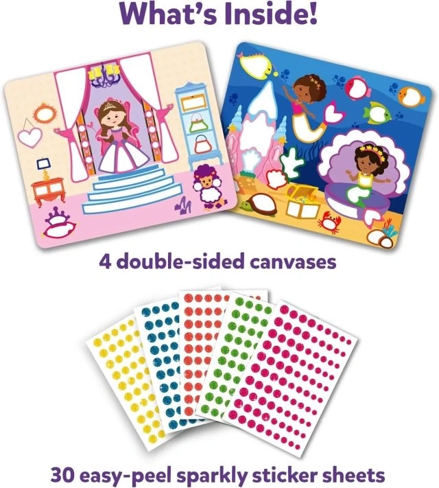• WHAT'S INSIDE: 30 easy-to-peel, colored sticker sheets (500+ stickers), 4 double-sided canvases