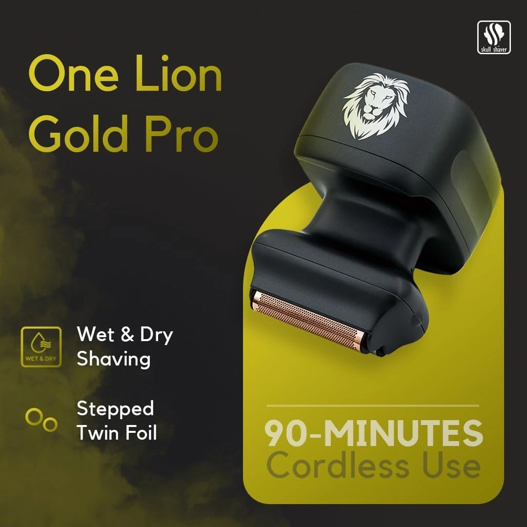 Skull Shaver One Lion Gold PRO Face Shaver for Men - Precision Grooming - Stepped Twin Foil - Ergonomic Grip - LCD Display - Cordless & Rechargeable