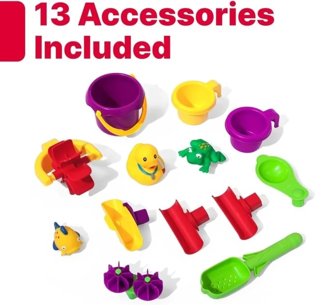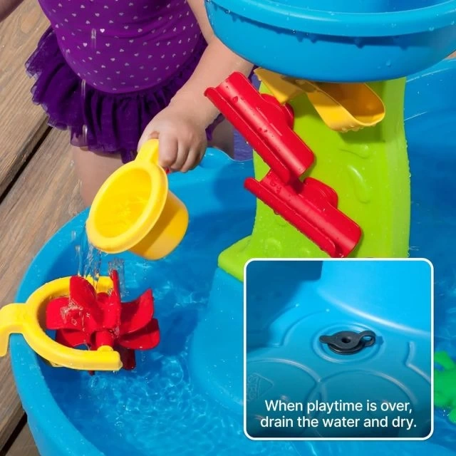 Bu çocuklara yönelik su tablası, arka bahçenizde mini bir su parkı yaratacak! Havuzdaki suyu almak için büyük kovayı kullanın ve üstteki şelale tepsisine dökün. Su gölete sıçradığında yağmur etkisinin nasıl etkinleştirildiğini izleyin!