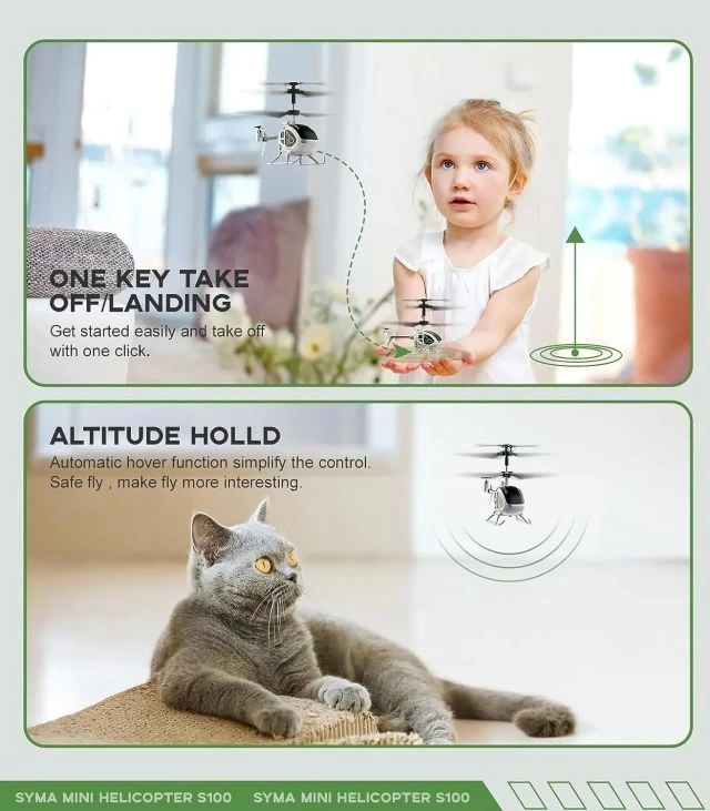 Uzaktan Kumandalı Helikopter: Kullanımı kolay helikopter Yukarı, Aşağı, Sol, Sağ, İleri ve Geri. Tek tuşla Kalkış/İniş, Tutum Tutma, Acil durdurma, LED Işık işlevlerine sahiptir.