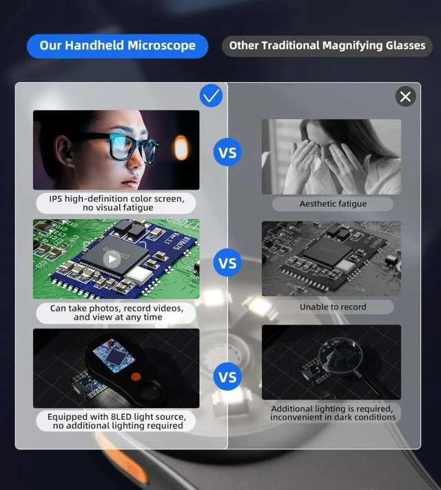 Komik Bir Araç: Bu elektronik mikroskop, geleneksel bir mikroskop değil, daha çok sabit odaklı bir büyüteçtir, Profesyonel ciddi biyologlar için uygun değildir! Bu kesinlikle ebeveynler, yetişkinler, öğretmenler, öğrenciler, çocuklar, koleksiyoncular, testçiler, elektronik tamircileri ve cilt saç derisi trikomlarını ve mikroskobik dünyayı keşfetmekle ilgilenen meraklı insanlar için çok ilginç bir şey.