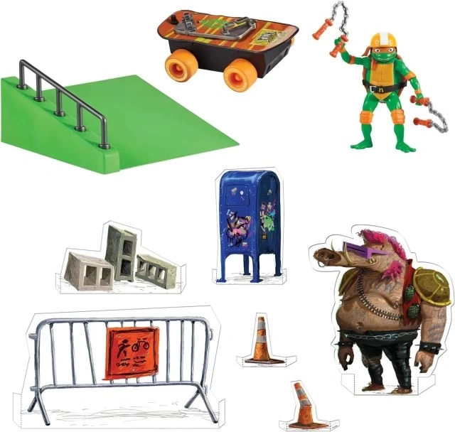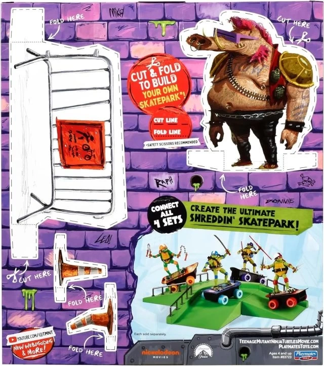 ONLARI BİR ARAYA YERLEŞTİRİN: 4 Teenage Mutant Ninja Turtles Build N' Shred Skatepark setinin tümünü satın alın ve rampalarını birleştirerek eksiksiz bir kaykay parkı oluşturun!