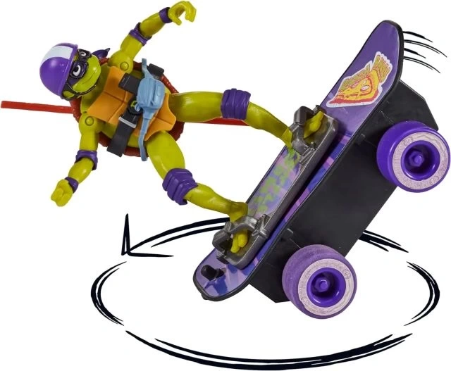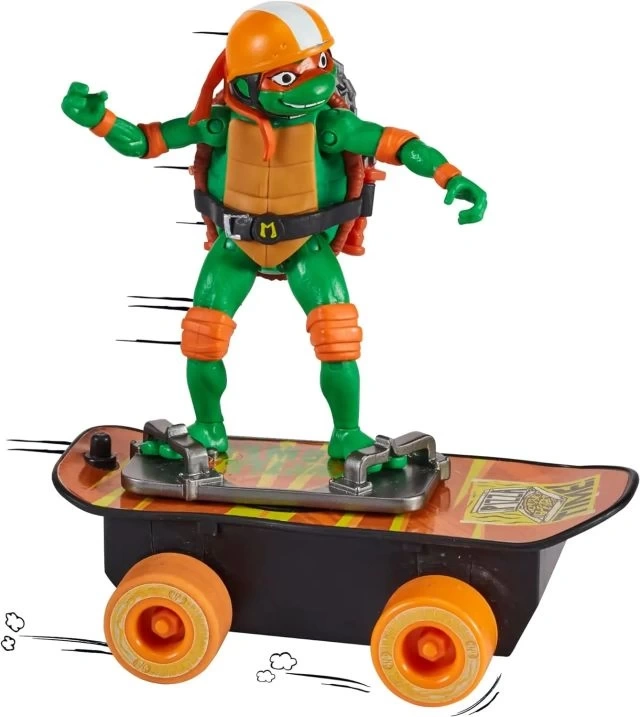 ÖZEL MICHELANGELO: Orijinal Mikey figürü 4,25 inç boyundadır ve 12 eklem noktasıyla son derece poz verilebilir. Süper parçalayıcı pozlar için! (Çıkarılamaz) bir kaykay kaskı ve hızlı hareket eden motorlu bir kaykay takarak geliyor!