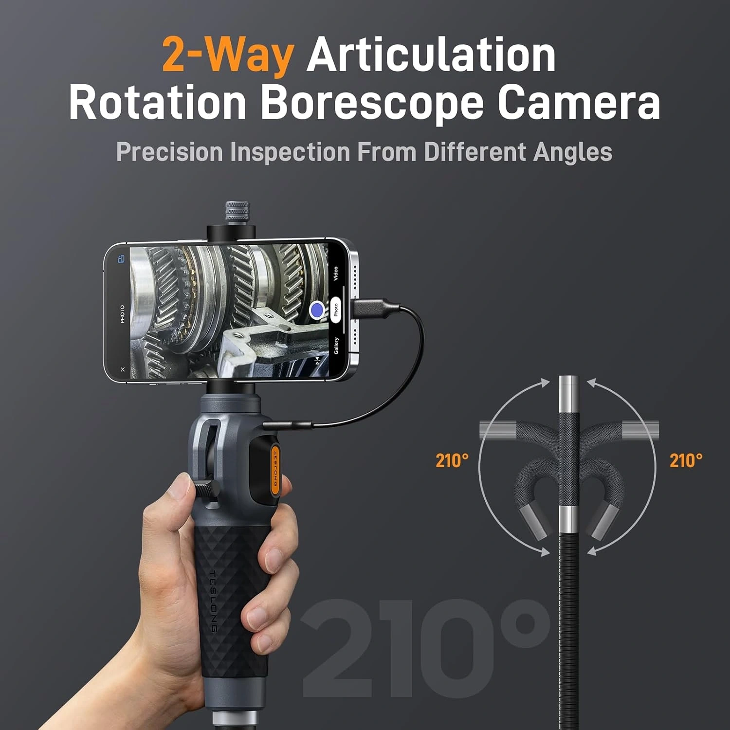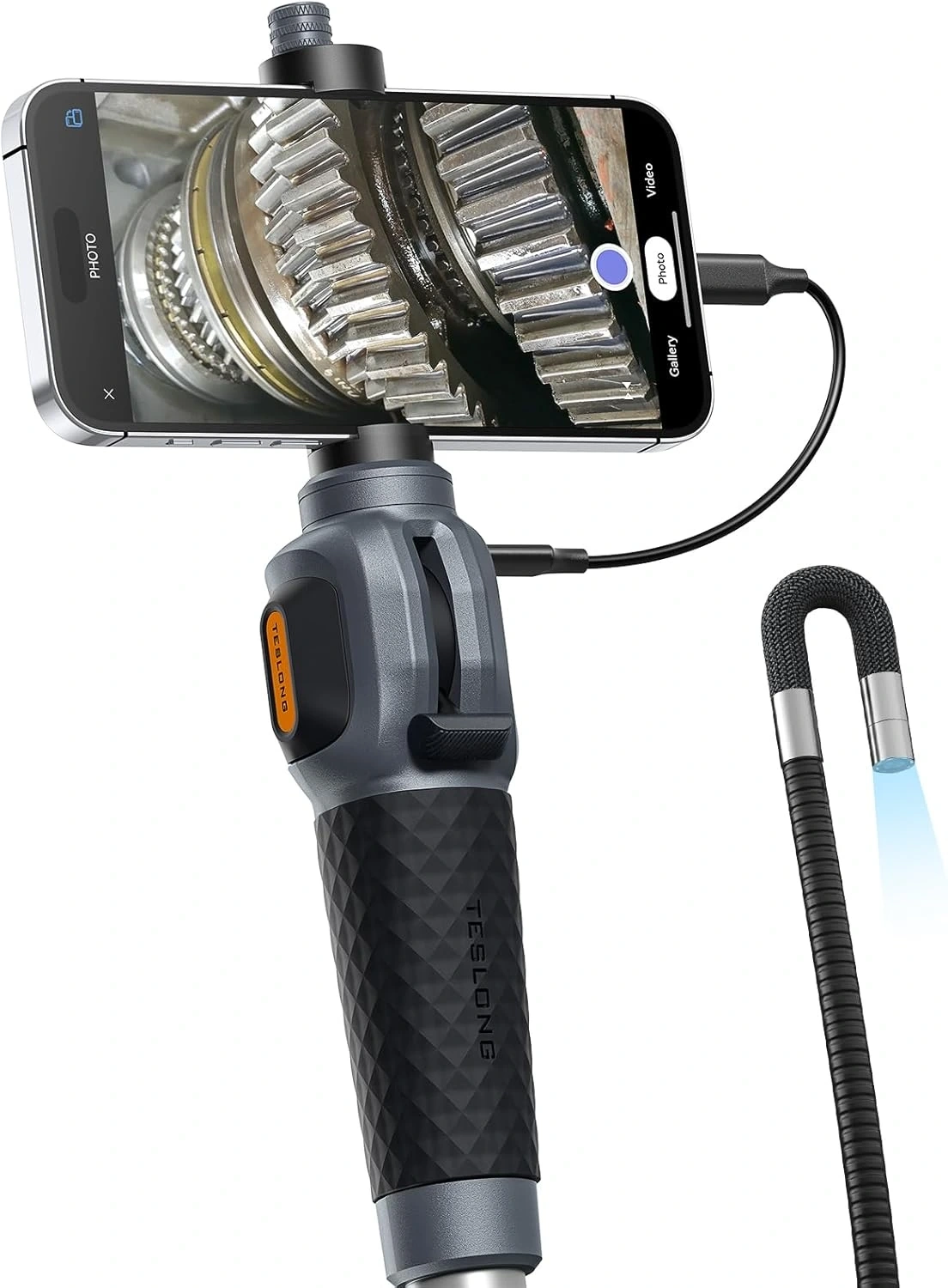 Teslong Two-Way Articulating Borescope with Light, USB-C Endoscope Inspection Camera with 5FT Semi-Rigid Probe, Flexible Snake Scope for Home Repair, Automotive, Compatible with iPhone 15/16 & Android
